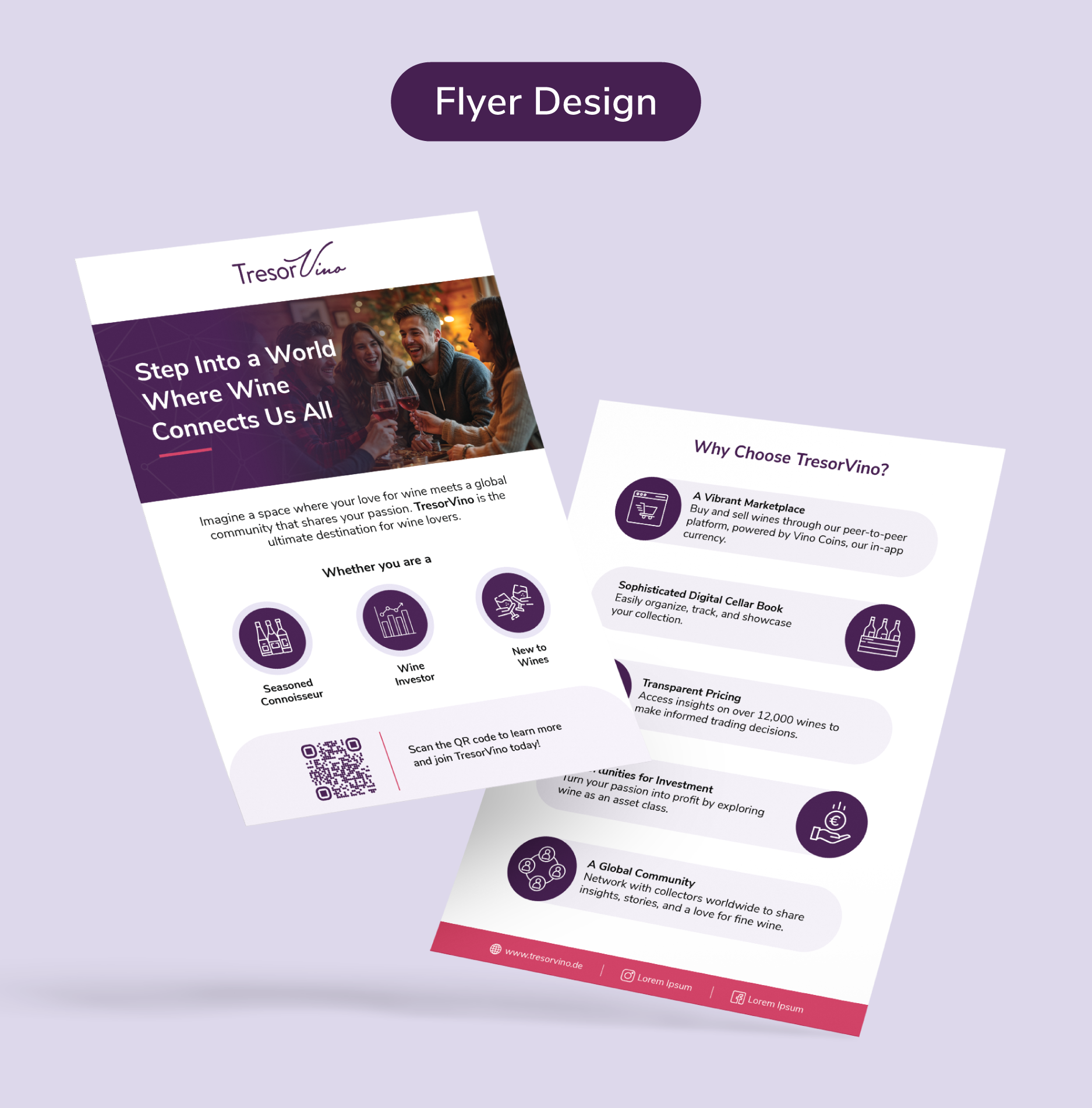 We partnered with TresorVino to give their online presence, especially the website a refresh after they recognised their website lacked a distinctive clear message. To solve this, we crafted an identity that resonates with their audience, rewrote the website copy to articulate benefits more clearly, and created an engaging character-animated explainer video. For offline engagement, we designed concise fliers highlighting key features.